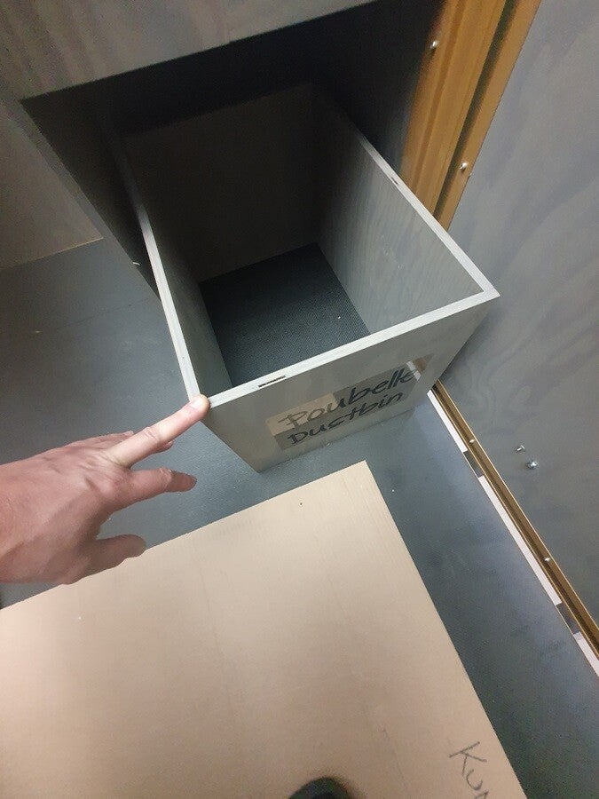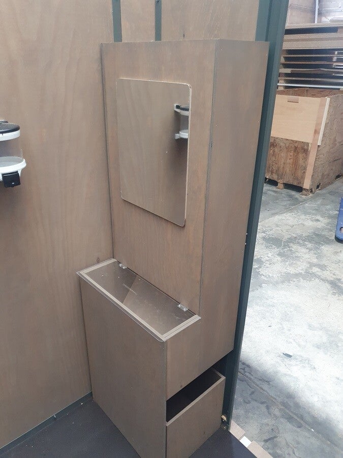 Poubelle de 70 litres. Bac à copeaux fixe 40 litres.